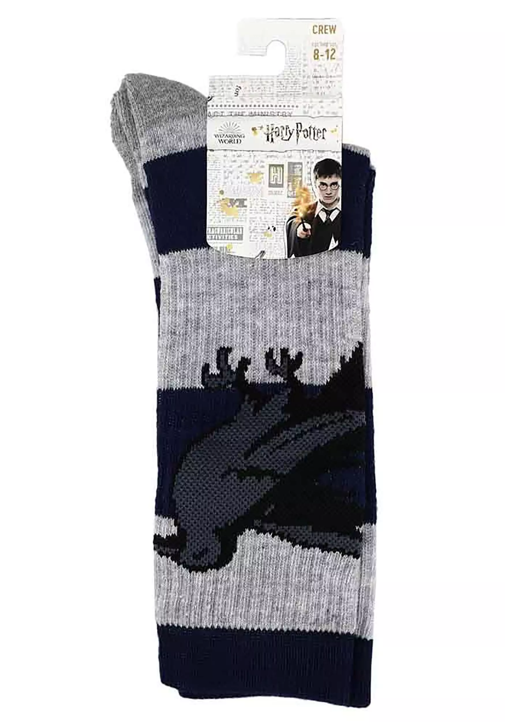 Are you a fan of House Ravenclaw but require some officially licensed merch? Well, you need no longer because we have the ideal socks for you! Our Harry Potter Ravenclaw Rugby Stripe Crew Socks are perfect for lounging or playing sports. Fans of the hit movies and the books will immediately recognize the iconic Ravenclaw crest on the side of the sock. Pick up some striped Ravenclaw rugby socks today and kick it with the best of ’em.