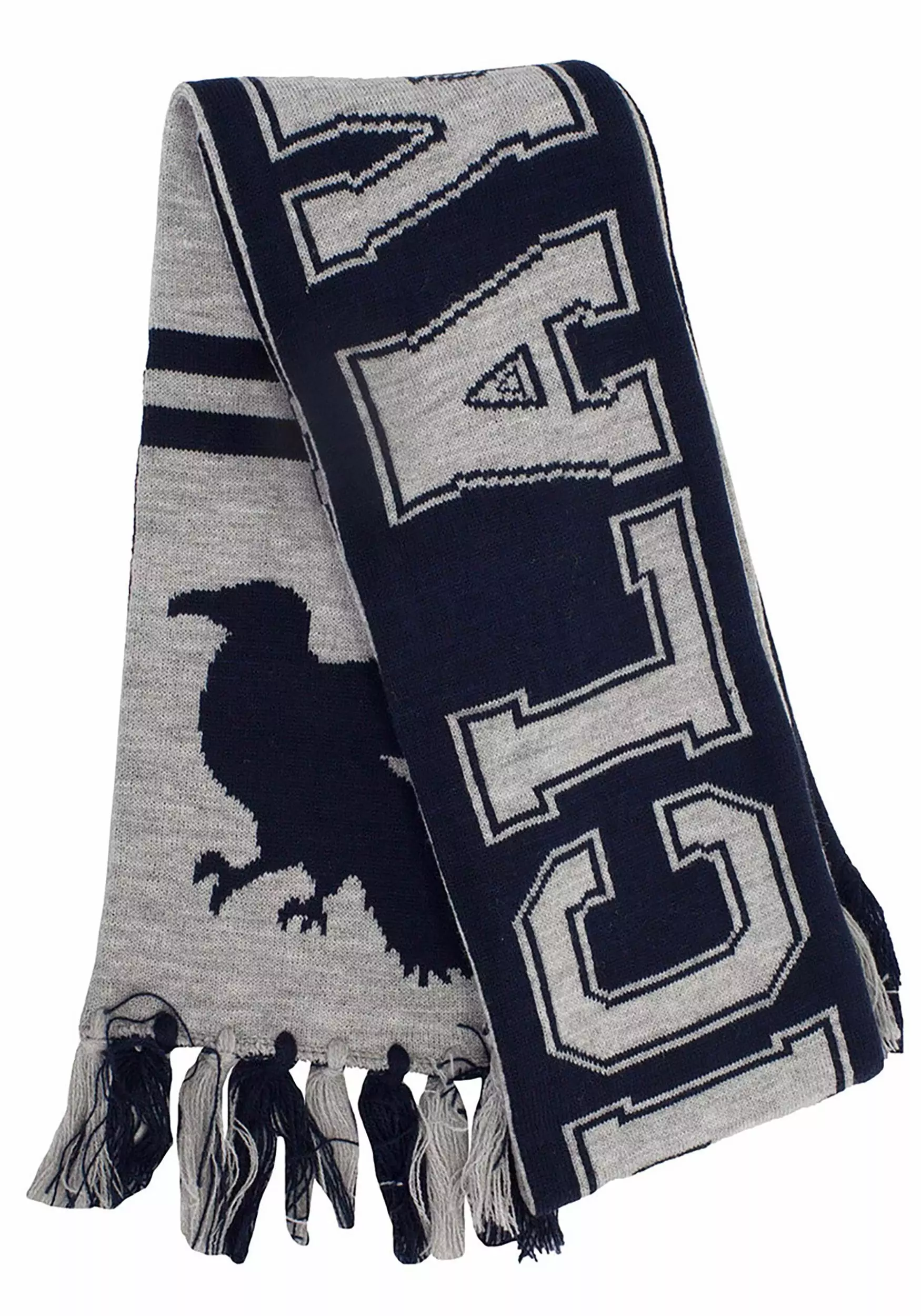 And you seem like a Ravenclaw. We aren’t quite sure what it is. Maybe it’s the fact that you’re still reading this description. That sort of dedication conveys to us your superior intelligence and your curious disposition. Yeah, it must be that. And what would be the fun in being sorted into a Hogwarts house without properly repping it? For that, we have something for you and your ambition: this officially licensed Ravenclaw Reversible Knit Scarf. It’s a warm, all-acrylic scarf that fits most and has the house’s familiar eagle mascot on both ends. Just drape, twist, or tie the scarf in whichever way you need to get your prospective Ravenclaw fellows to notice.