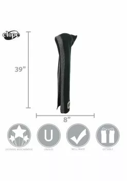 - Each side of hood has a hanging 30″ long scarf panel