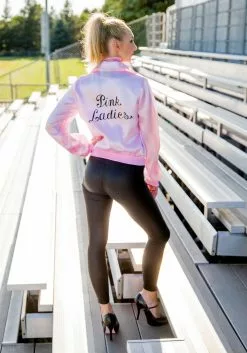 Rydell High’s coolest clique wants you! To join them you’ll need this Grease Plus Size Pink Ladies Jacket. Then you’ll fit right in. This plus size women’s Grease jacket is officially licensed and ready for you to wear for Halloween or a theme party. The satin jacket has an interlock waistband and sleeve cuffs for an authentic look straight out of the 1950’s. The back of the jacket has Pink Ladies printed on it in black script lettering. The jacket zips up in the front and has two false pockets for added detail. Also included is a chiffon scarf that measures 21” long. Perfect for starting a drag race or getting warm on a cool night out at the drive-in movies. Add a pair of black leggings and high heels for a look straight out of the classic film!