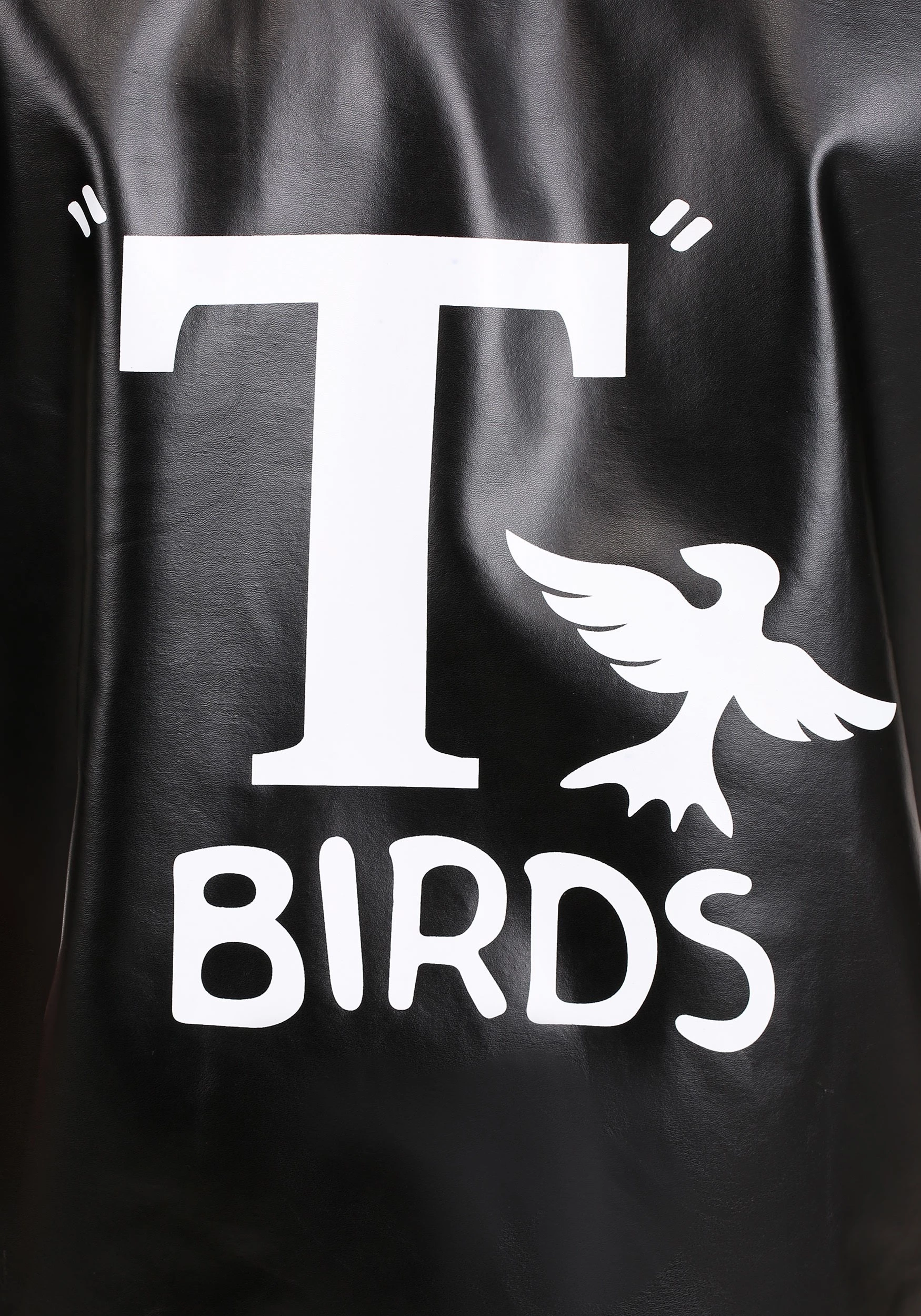 This officially licensed Grease T-Birds jacket is the perfect way to get the retro look you’ve been searching for this Halloween (or maybe even for that theme party you’ve been dying to go to). The black jacket is 100% faux leather vinyl and has an off-center front zipper for added detail. Faux pockets on the front also bring the jacket to life. The back of the jacket has the classic “T-Birds” logo printed with white ink.