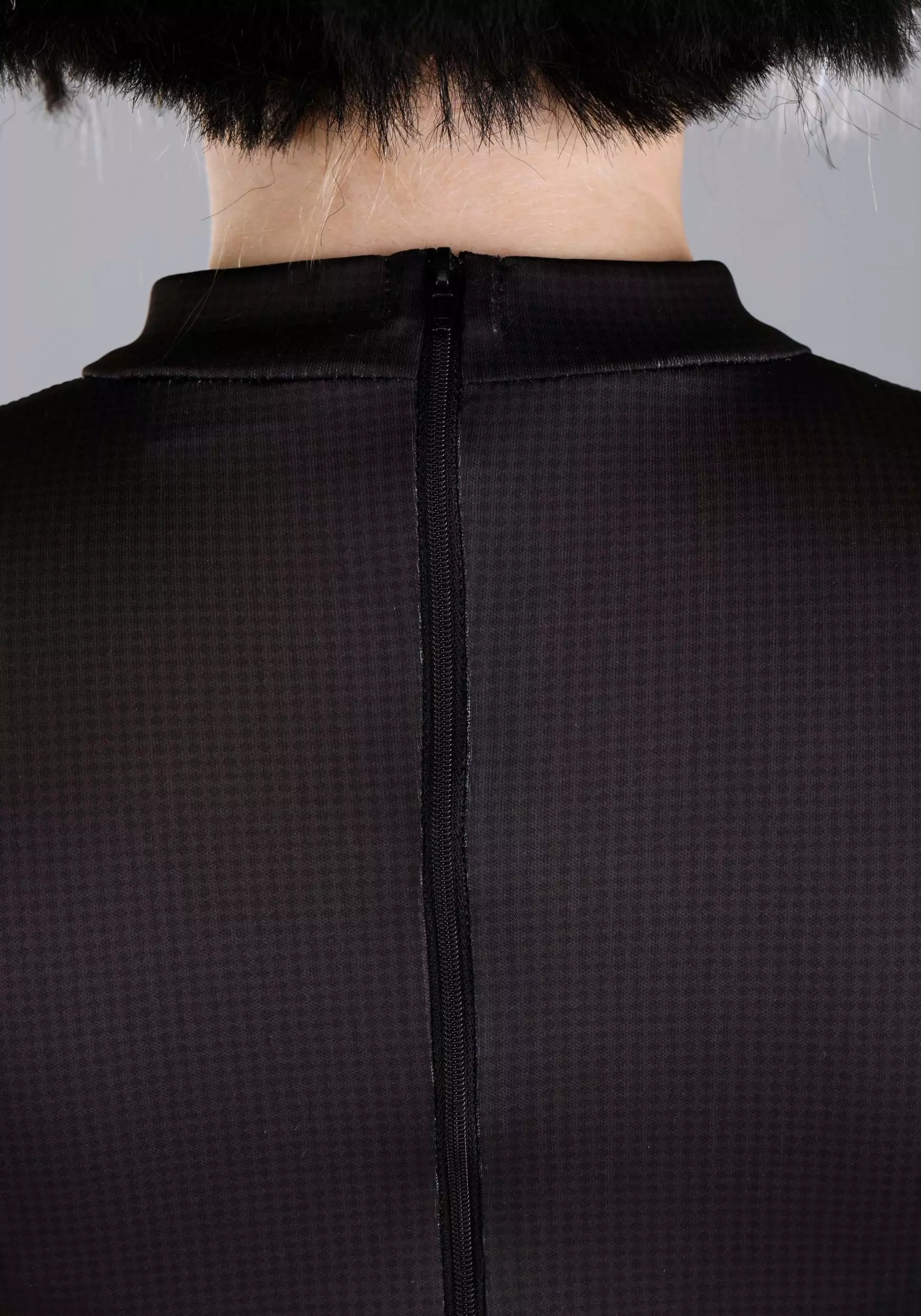 - Shiny jersey knit jumpsuit w/ foam black fabric