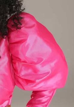 Embrace all the fun of a throwback ensemble when you wear your exclusive Women’s 80s Pink Pop Star Plus Size Costume! The pink taffeta one-shoulder dress zips down the center back and cinches around the middle with a metallic gold faux leather belt that has a large gold-tone buckle. The left sleeve features an oversized puffed leg o’ mutton shoulder with crinoline inside to help it keep its shape. Crinoline is also concealed inside the skirt’s bubble hemline. Finish it off with the taffeta headband!