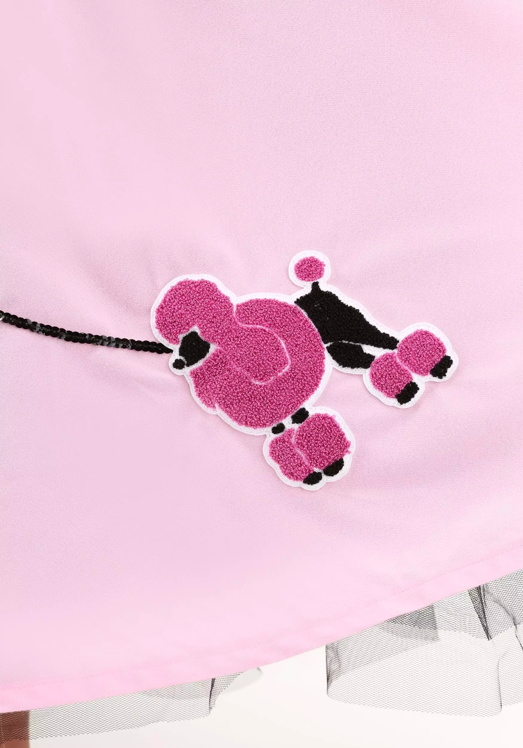 Slipping into this sock hop kit is just as easy and casual as hosting a sock hop in the fifties! The kit features a circle skirt with an embroidered poodle patch, a pair of lacy socks with music notes on the ankles, cat eyeglasses, and a pale pink polka dot scarf. Pair the poodle skirt with all sorts of tops from preppy cardigans to collared button-ups, or even a boat neck striped top. However you wear this set, you’ll be ready to rock and roll once you’re all dressed up!