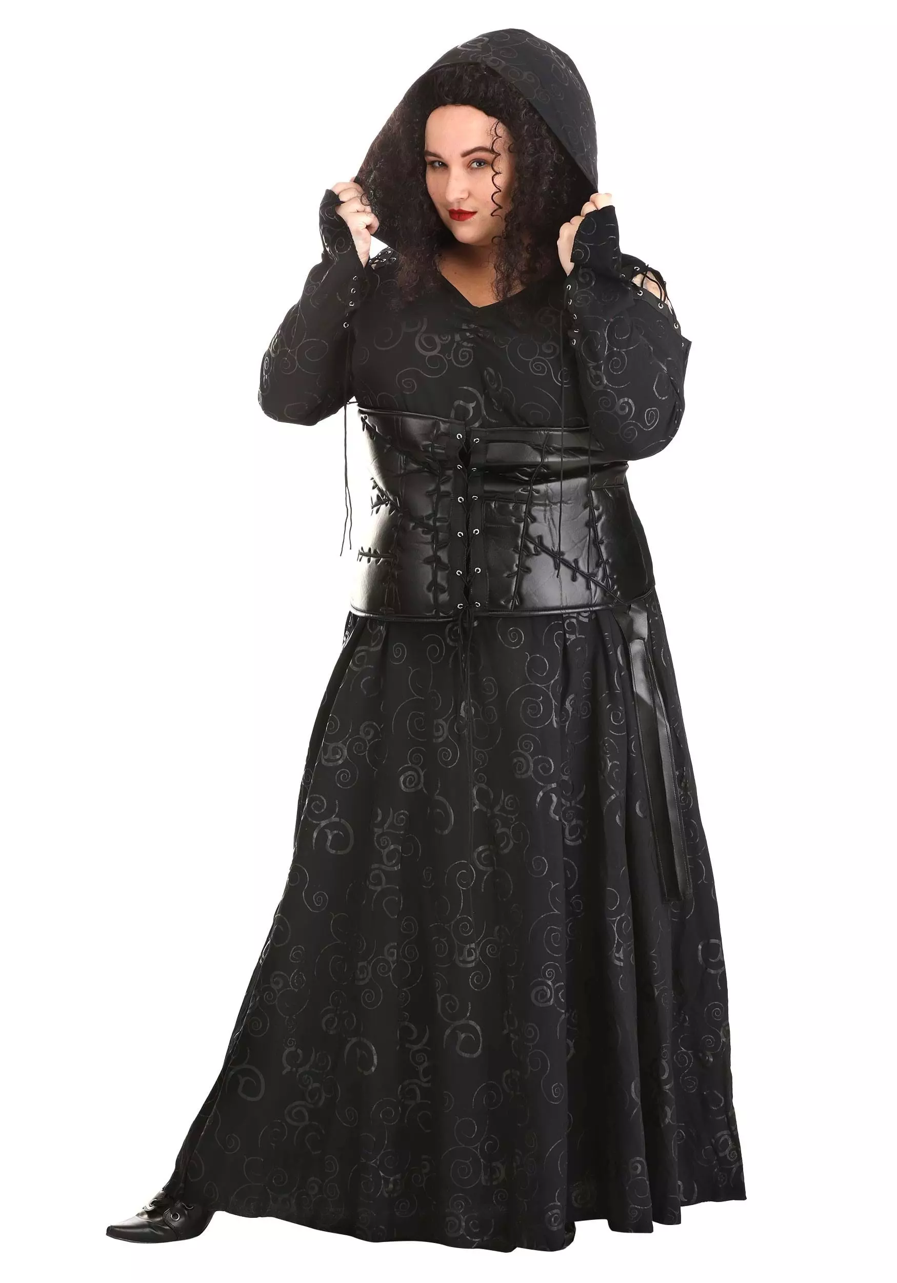 Are you looking for a costume that is creepy enough to send chills up the spines of the most dedicated Halloween hosts, but also fun to wear and witchy, too? If you’re a Harry Potter fan (and come on, who isn’t?), then you’re going to want to snag this Women’s Plus Size Deluxe Harry Potter Bellatrix Costume. Now everyone’s most feared and deranged witch can come to life with the help of your spot-on depiction and this cool ensemble!