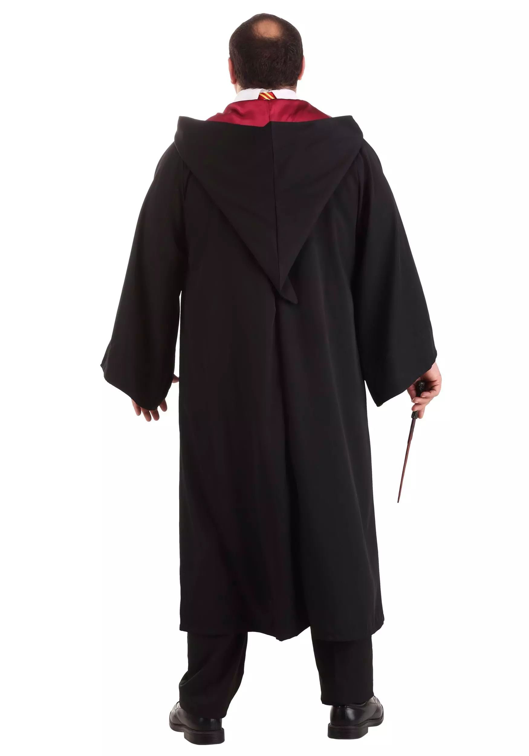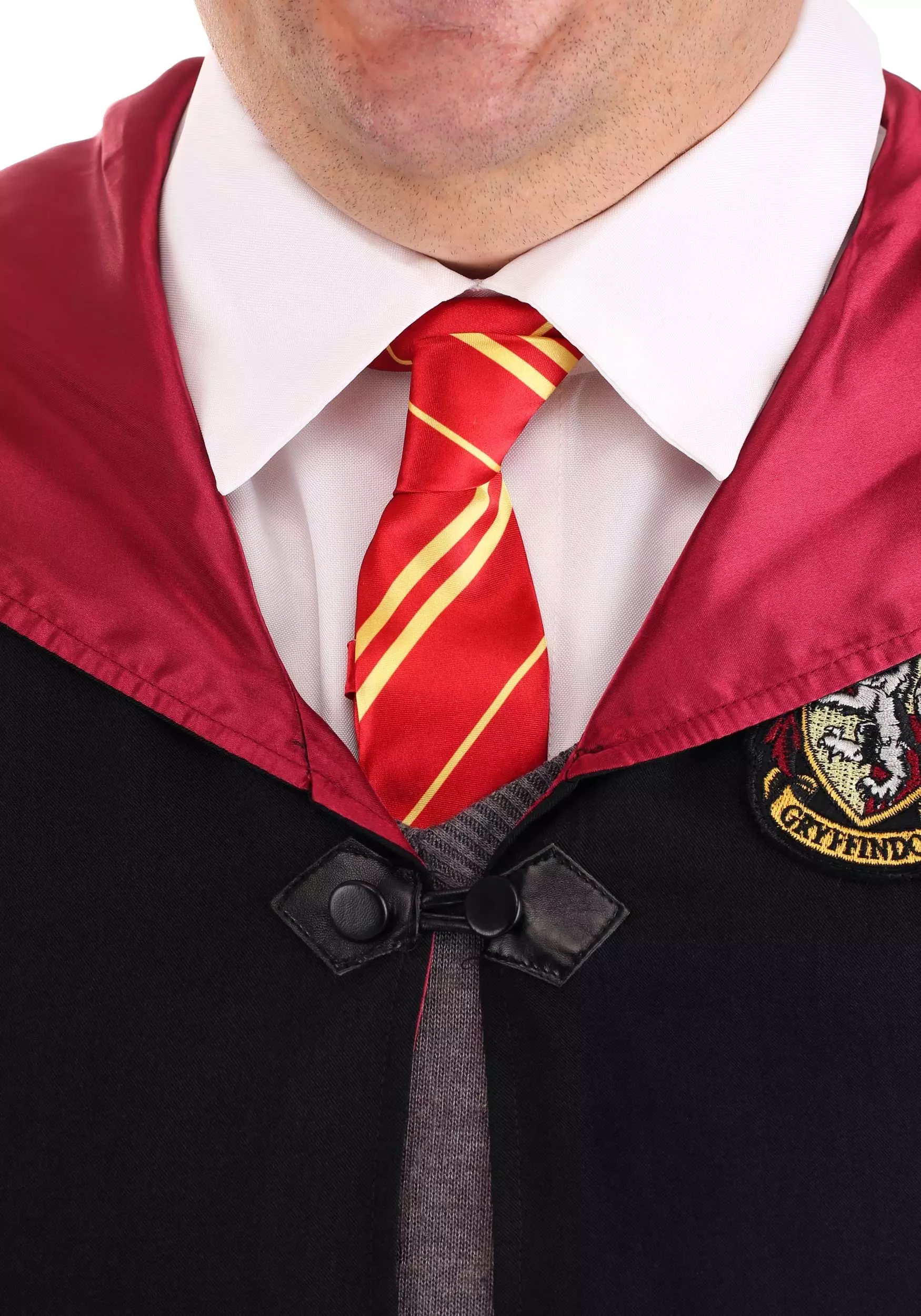This exclusive and officially licensed Plus Size Harry Potter Costume is exactly what you need for all your wizarding adventures! It comes with a faux silk tie, just like Harry’s. The v-neck soft-knit sweater has an embroidered Gryffindor crest on the chest and could easily have been taken from Harry’s own wardrobe. The Dickey, with its hook-and-loop fastener, is very reminiscent of one that Harry once wore. We want to stress that the hooded robe is not the invisibility cloak and is, in fact, very visible. Its red satin lining on the sleeves and front edges make it more like a visibility cloak.