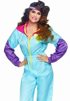 Embrace your 80s ethos when you rock this Women’s Awesome 80s Ski Suit Costume! This powder blue jumpsuit is playful, preppy, and absolutely the last word in stylish loungewear. The jumpsuit has elastic in the wrists, ankles, and waist so that you can show off that gorgeous figure you earned from all of those aerobics classes. The sleeves are purple and the collar is neon pink because you can’t have an 80s outfit without neon, obviously! A yellow zipper closure runs from the collar down the front of the jumpsuit so that you can customize your neckline. Yellow, pink, and purple stripes wrap around the right leg just above the ankle for some added funk. The yellow triangle emblem on the right front doubles as a pocket – to hold your Bazooka Gum, of course!